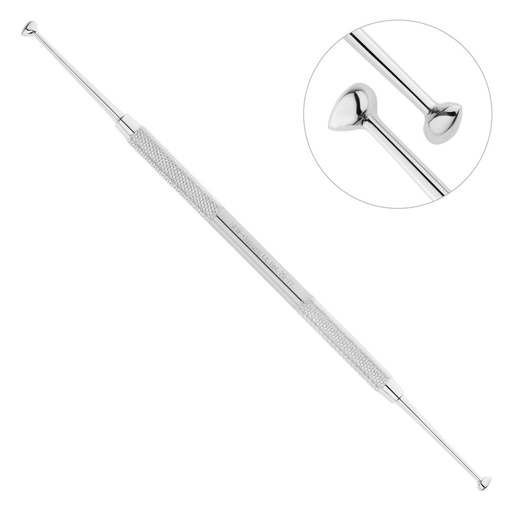 Ручка инструмента двусторонняя. С обоих концов гладилки расположены симметричные рабочие части. Каждая рабочая часть инструмента имеет каплевидную объемную форму, которая позволяет эффективно обрабатывать рабочий материал по поверхности зуба.