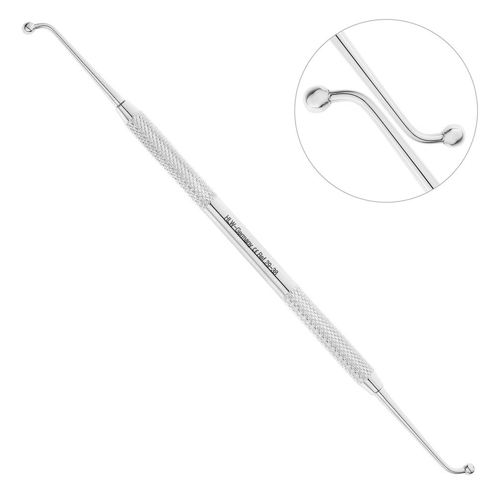 С обоих концов рукоятки инструмента расположены асимметричные рабочие части, каждая из которых имеет шаровидную форму. Диаметры рабочих частей стоматологического штопфера 3 и 3,5 мм соответственно. Благодаря такой конструкции инструмент прекрасно подходит для пломбирования жевательных зубов при помощи конденсируемых композитов.