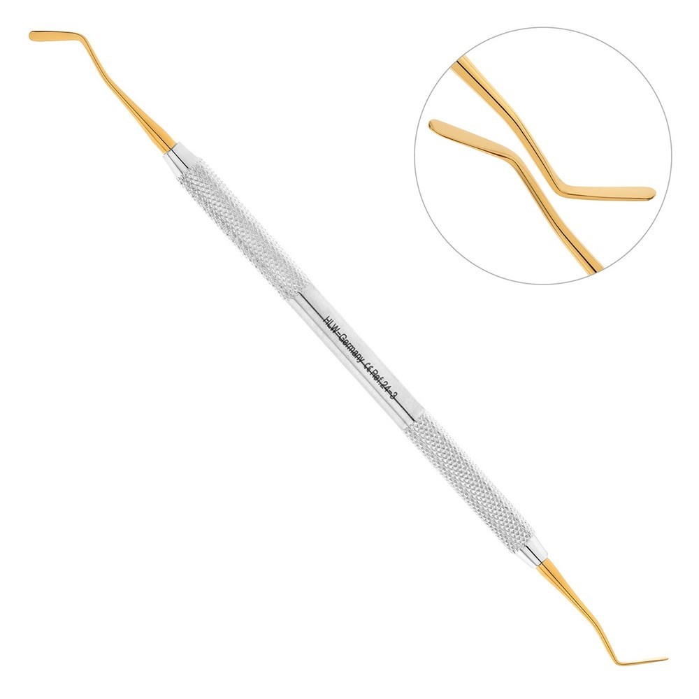 Стоматологическая гладилка с нитрид титановым покрытием производства компании HLW Dental Instruments предназначена для нанесения и уплотнения пломбировочного материала, конденсации его к стенкам кариозной полости, а также для формирования пломб.