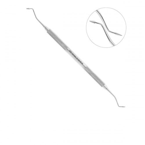 Ручка стоматологического инструмента удобна в использовании. На внешнюю поверхность рукоятки гладилки с обоих концов нанесены продольно-поперечные насечки, предотвращающие скольжение фаланг пальцев в перчатке и снижающие нагрузку на руку.