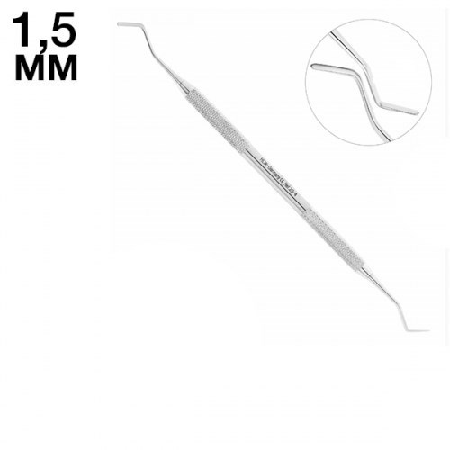 Оба функциональных стержня инструмента имеют двойной изгиб по ребру, благодаря чему гладилка используется при пломбировании полостей, расположенных в апроксимальных зонах.