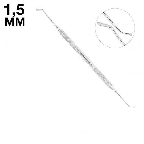 С обоих концов двусторонней гладилки-штопфера расположены отличные друг от друга рабочие части, одна из которых имеет шаровидное строение диаметром 1,5 мм, предназначенное для уплотнения пломбировочного материала в обработанную кариозную полость. Противоположная рабочая часть стоматологического инструмента представлена в виде плоской лопатки с закругленным концом, что очень удобно при нанесении пломбировочного материала на поверхность зуба.