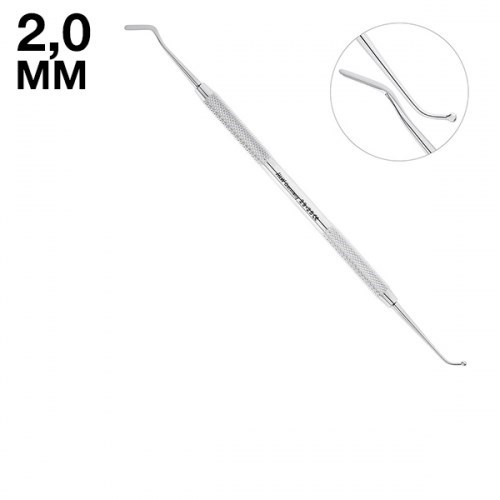 С обоих концов двусторонней гладилки-штопфера расположены отличные друг от друга рабочие части, одна из которых имеет шаровидное строение диаметром 2 мм, предназначенное для уплотнения пломбировочного материала в обработанную кариозную полость. Противоположная рабочая часть стоматологического инструмента представлена в виде плоской лопатки с закругленным концом, что очень удобно при нанесении пломбировочного материала на поверхность зуба.
