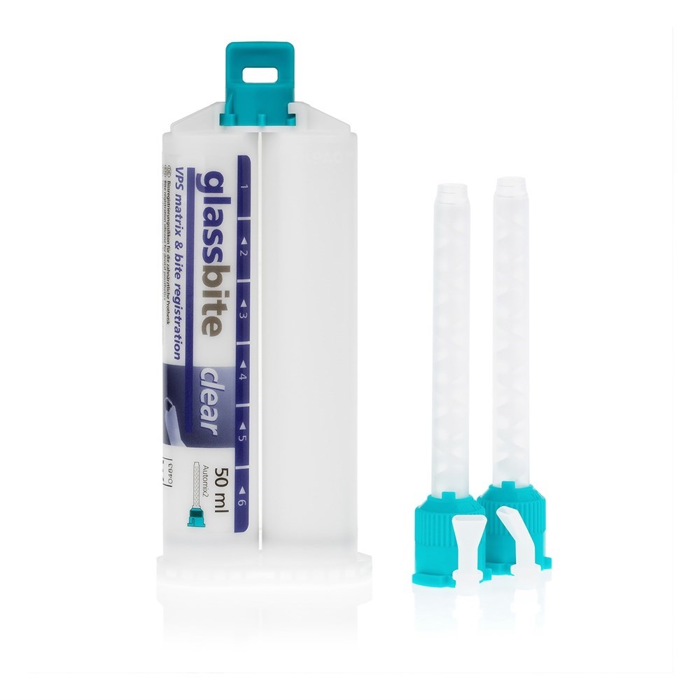 Прозрачный материал для регистрации прикуса на основе А-силикона. Glassbite производится компанией Detax на заводе Германии и соответствует самым высоким стандартам изготовления стоматологических материалов. Регистратор прикуса обладает средней вязкостью и текучестью, что обеспечивает комфорт при прямом нанесении за зубной ряд. Короткое время полимеризации Glassbite в полости рта делает работу с ним комфортной для пациента. Имея высокую конечную твердость, данный материал удобен при обработке с помощью разрезания и фрезерования. Glassbite может использоваться как шаблон для светоотверждаемых композитных конструкций или при расположении вспомогательных элементов.