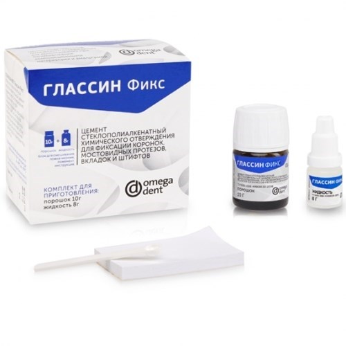 ГЛАССИН Фикс – это стеклополиалкенатный (стеклоиономерный) рентгенконтрастный фиксационный материал, применяется при фиксации коронок и мостовидных протезов, а также для фиксации вкладок и штифтов.
