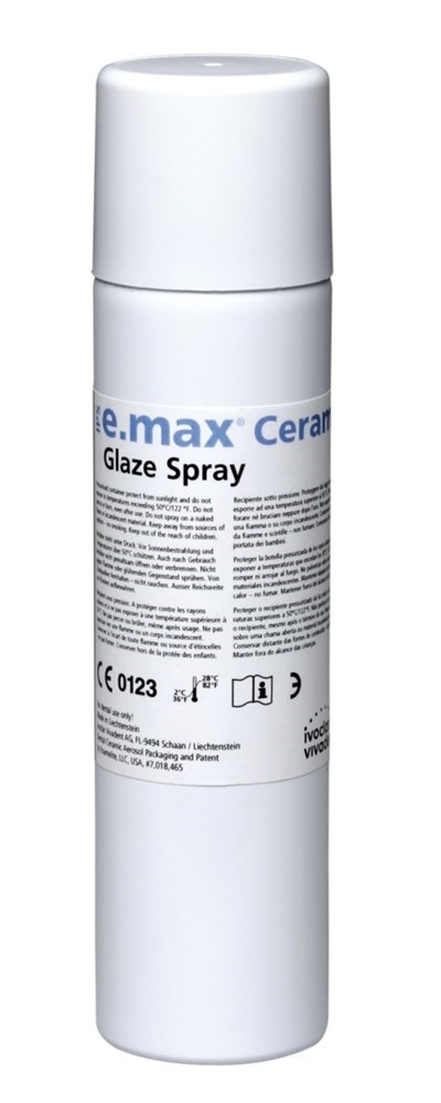 Глазуровочный спрей IPS e.max Ceram Glaze Spray 270 мл Для быстрого и простого глазурования полоанатомических прессованных/фрезерованных или облицованных реставраций IPS e.max (нельзя использовать на блоках IPS e.max CAD в "голубом", не кристаллизованном состоянии.