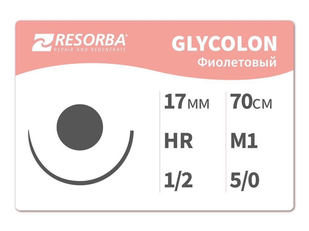 Гликолон фиолетовый 70см40201 Гликолон фиолетовый М1, (5/0), 70см, HR 17.PB, Ресорба/RESORBA (Германия)