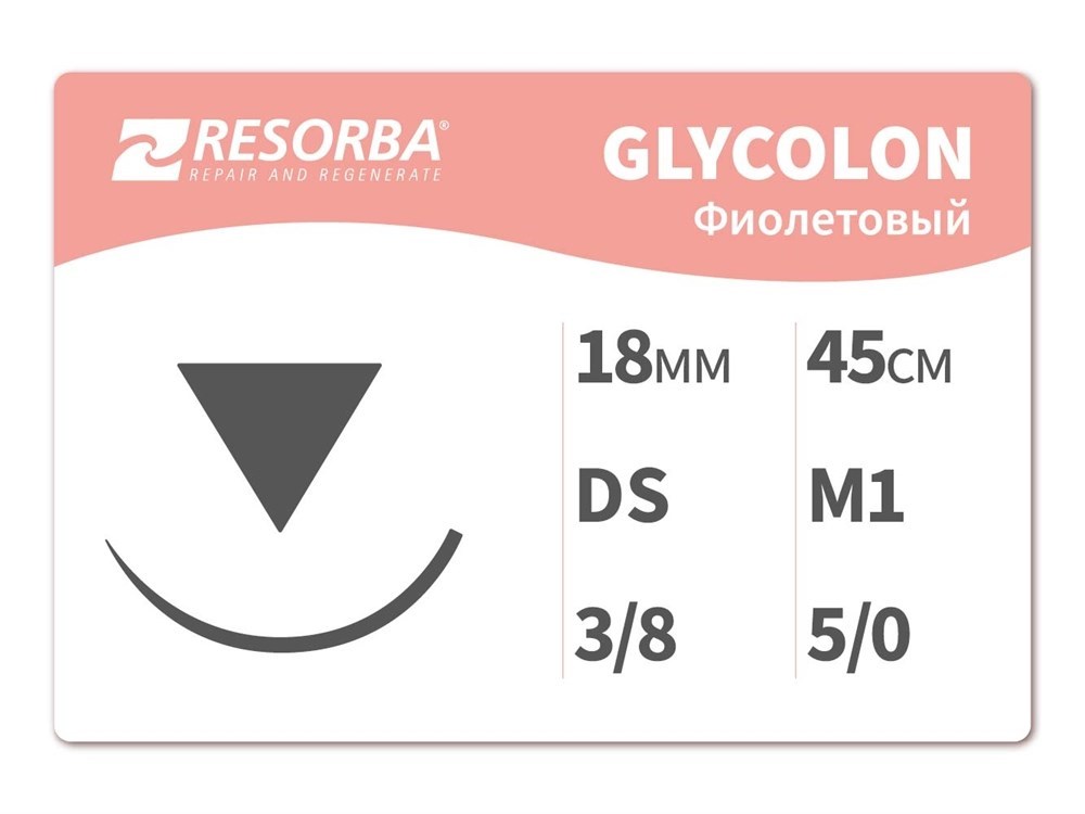 Гликолон фиолетовый М1 45 см41421 Гликолон фиолетовый М1, (5/0), 45см, DS18.PB, Ресорба/RESORBA (Германия)