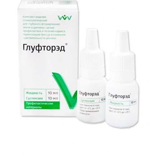 Описание: Глуфторэд 10мл-глубокое фториров.В стоматологический комплект «Глуфторэд» входят: жидкость – раствор голубого цвета, содержащий ионы фтора и меди, суспензия – мелкодисперсная гидроокись кальция в дистиллированной воде с добавлением стабилизатора.