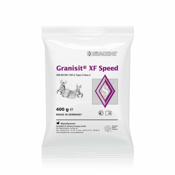 Фосфатный, не содержащий графита паковочный материал Granisit XF Speed мелкого помола применяется для изготовления бюгельных протезов. Он специально был разработан для термической обработки методом «теплового шока» и для обычного метода прогревания.