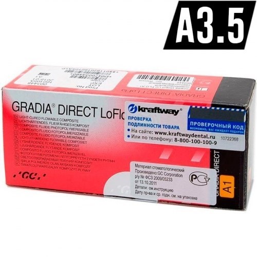 Описание: GС Gradia Direct LoFlo цвет А3.5 (2 шприца х1,5г), светоотверждаемый гибридный композитGC GRADIA DIRECT LoFlo – это многоцелевой светоотверждаемый рентгеноконтрастный микронаполненный гибридный композит, выделяющий фтор. Благодаря разработанной GC новой технологии HDR (Рентгеноконтрастный пре-полимеризованный наполнитель высокой плотности) материал обладает великолепной устойчивостью к абразии. Благодаря более густой консистенции материала (более низкая текучесть) он идеально подходит для пломбирования полостей по III и V Классу и полостей в пришеечной области.