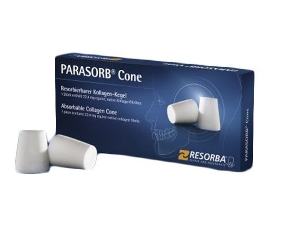 Рассасывающийся коллагеновый конус обладает гемостат.действ,способств.очищению раны, усиливает регенерацию.