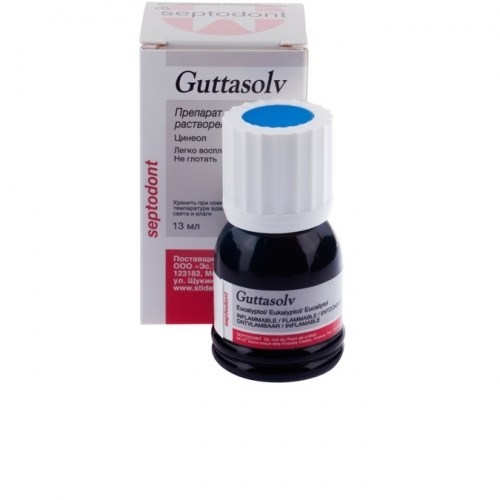 Описание: Guttasolv (13 мл)-жидкость для распломбирования гуттаперчи, SeptodontGuttasolv - препарат-сольвент для растворения гуттаперчи.