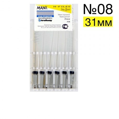 Описание: H-Files №08 (31мм), 6шт MANIМани корневой бурав ручной (Mani H-Files)