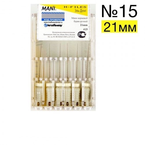 Описание: H-Files №15 (21мм), 6шт MANIМани корневой бурав ручной (Mani H-Files)
