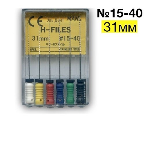 Описание: H-Files №15-40 (31мм), 6шт MANIМани корневой бурав ручной (Mani H-Files)