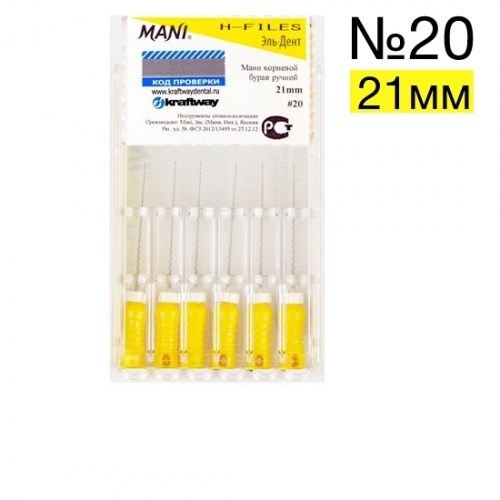 Описание: H-Files №20 (21мм), 6шт MANIМани корневой бурав ручной (Mani H-Files)