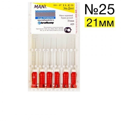 Описание: H-Files №25 (21мм), 6шт MANIМани корневой бурав ручной (Mani H-Files)