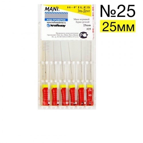 Описание: H-Files №25 (25мм), 6шт MANIМани корневой бурав ручной (Mani H-Files)