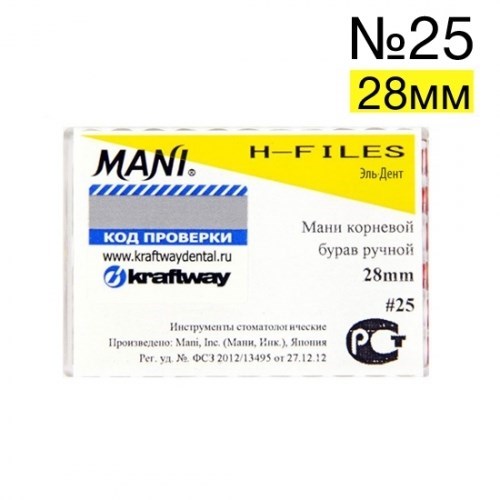 Описание: H-Files №25 (28мм), 6шт MANIМани корневой бурав ручной (Mani H-Files)