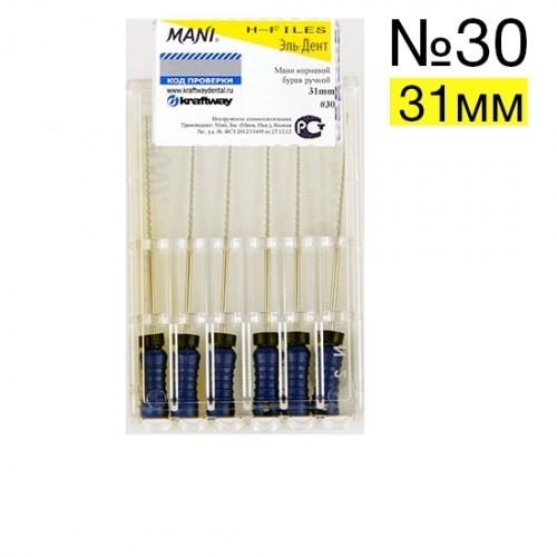 Описание: H-Files №30 (31мм), 6шт MANIМани корневой бурав ручной (Mani H-Files)