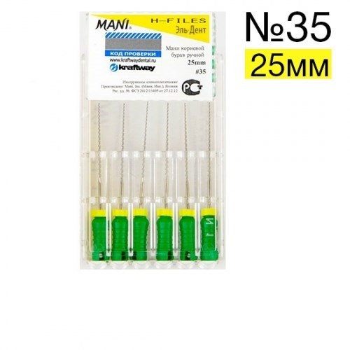 Описание: H-Files №35 (25мм), 6шт MANIМани корневой бурав ручной (Mani H-Files)