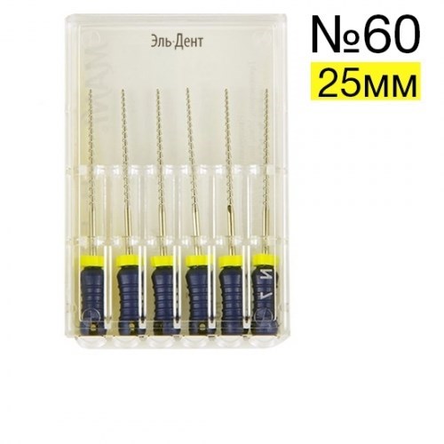 Описание: H-Files №60 (25мм), 6шт MANIМани корневой бурав ручной (Mani H-Files)