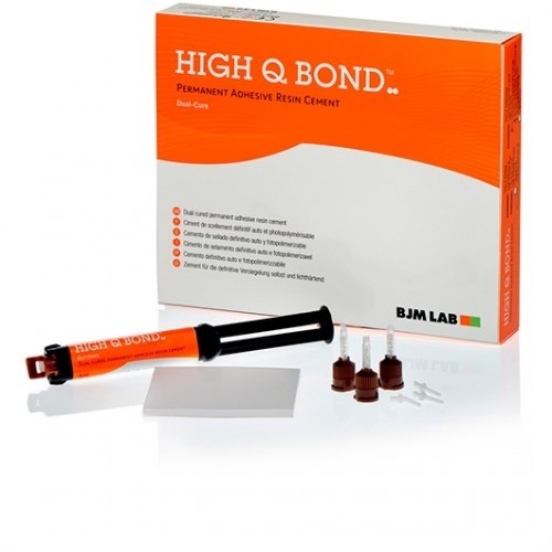 High-Q-Bond Adhesive Resin Cement представляет собой цемент химического отверждения, который может полимеризоваться также с помощью светополимеризационной лампы для его мгновенного отверждения и обеспечения высочайшей прочности по краям.