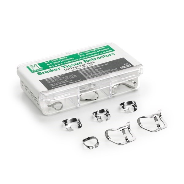 Набор кламмеров для сильно разрушенных зубов Brinker Universal Clamp Set (Улучшенная ретракция). Кламмеры обеспечивают максимальную ретракцию без травмирования тканей десны.