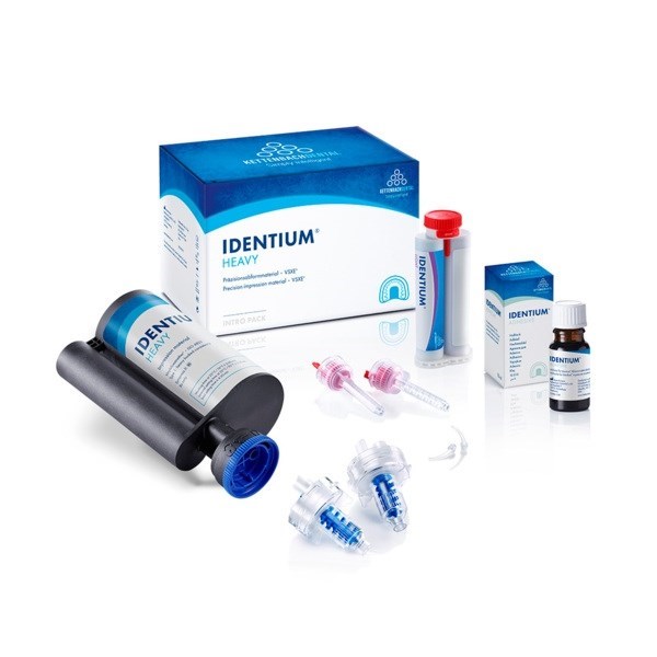 Identium Heavy - вязкотекучий прецизионный оттискной материал из винилсилоксанэфира, который благодаря оптимальному созданию динамического давления в сочетании с Identium Light обеспечивает особенно хорошие результаты в технике двойного смешивания.