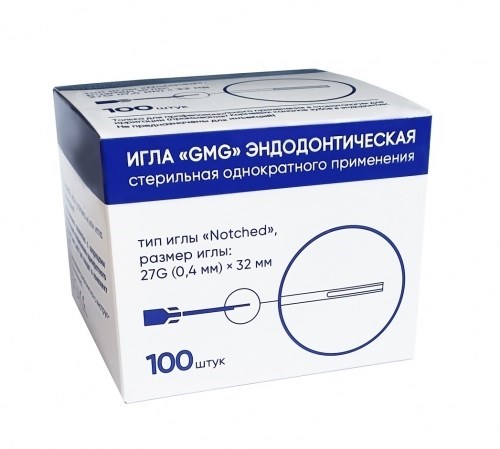 Иглы эндодонтические GMG стерильные 27G (0,4 х 32 мм), 100 шт., GMG
