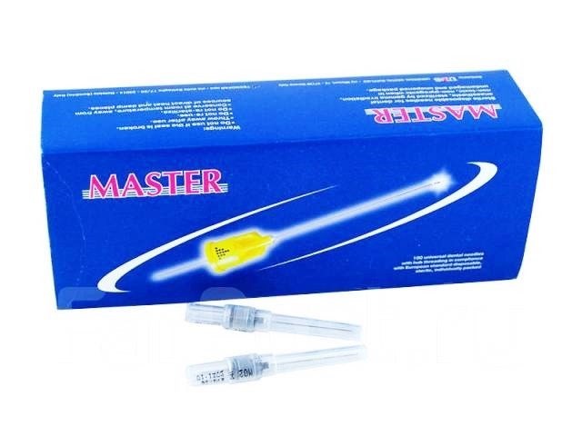Стерильные стоматологические иглы SIRIO (MASTER) одноразового применения для карпульных шприцов для проведения инфильтрационной и проводниковой анестезии. Стальные канюли, с супертонкими стенками, с силиконовым покрытием, с точечным ланцетом. Полипропиленовая втулка, указатель-индикатор направления выхода анестетика.