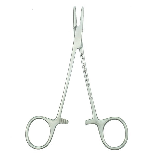 Длина инструмента — 13 см. Иглодержатель прямой.