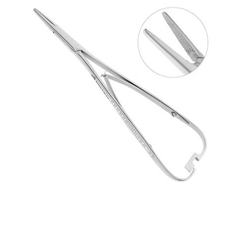 Предназначенны для проведения хирургической иглы через ткани при наложении швов. Прямые рабочие части имеют крестообразные насечки, препятствующие скольжению иглодержателя по поверхности хирургической иглы при наложении шва.