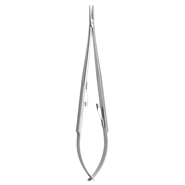 Прямой иглодержатель серии Castroviejo от американской компании Hu-Friedy используется для эффективного наложения швов, с нитью толщиной по USP 5/0, 6/0 и 8/0. Узкие рабочие части максимально надежно захватывают иглу. Внутренняя рельефная сторона предотвращает повреждение иглы.