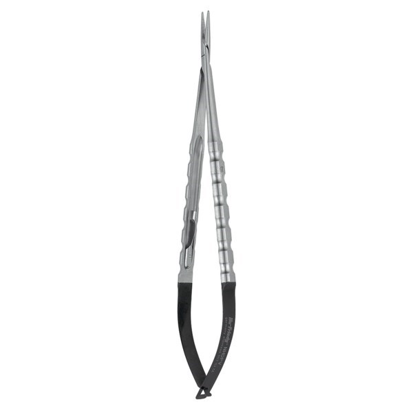 Прямой микрохирургический иглодержатель с алмазным напылением серии Castroviejo от американской компании Hu-Friedy применяется для захвата и направления иглы при наложении швов с нитью толщиной по USP 6/0 или 8/0.