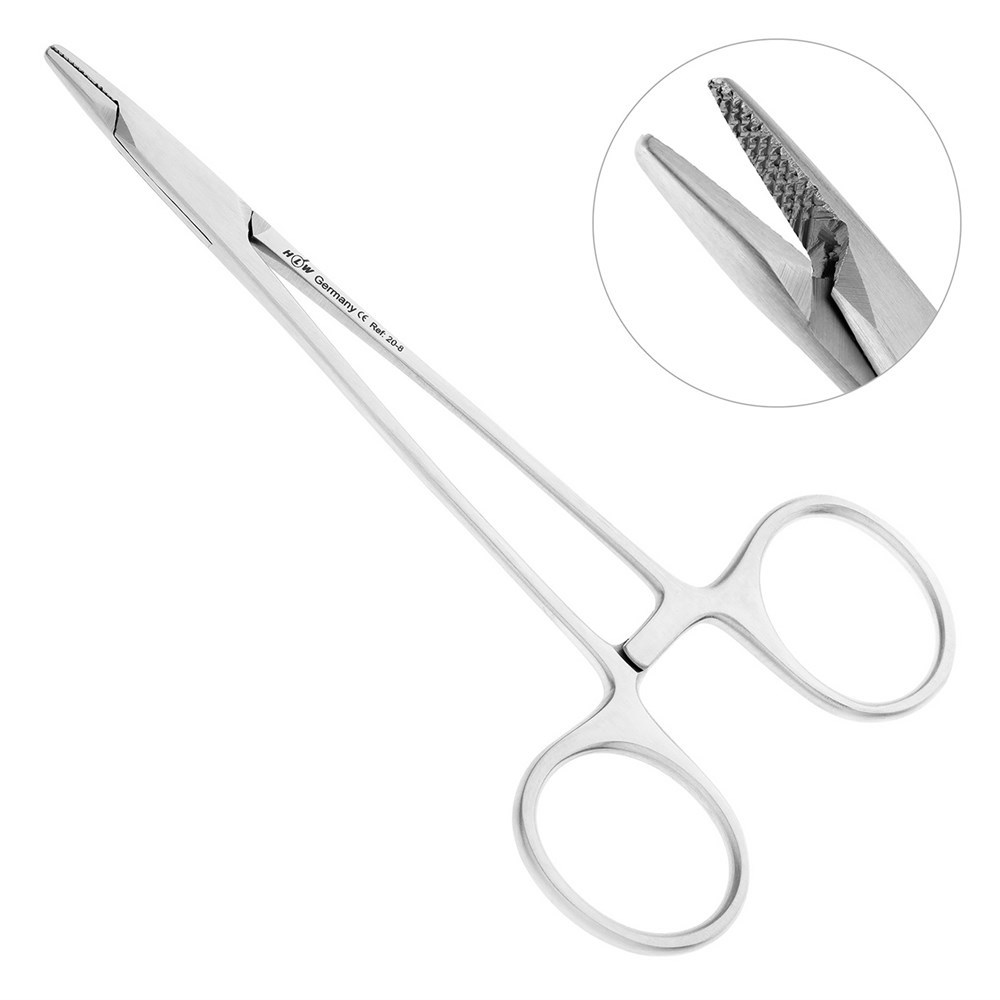 Хирургический иглодержатель Derf торговой марки HLW Dental Instruments применяется для проведения хирургической иглы через ткани при наложении швов.