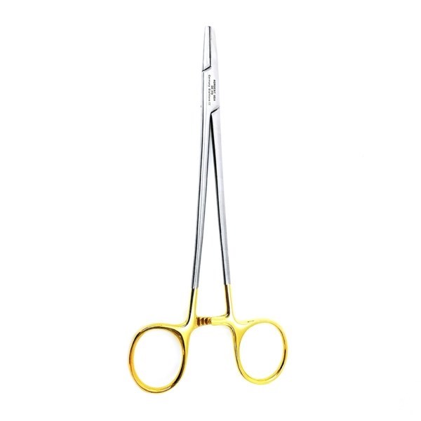 Края петель сужаются и закругляются, чтобы предотвратить зацепление шовного материала. Твердосплавные иглодержатели можно узнать по золотым ручкам. Их рекомендуется использовать в практике с большим объемом хирургических операций.