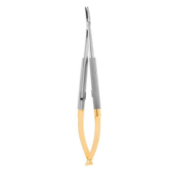 Иглодержатель микрохирургический CastroviejoGomel TC изогнутый, 14 см, карбит вольфрамовые вставки (5-0, 6-0, 70)