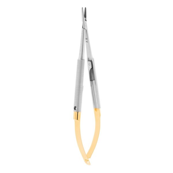 Иглодержатель микрохирургический CastroviejoGomel TC прямой, 14 см, карбит вольфрамовые вставки (5-0, 6-0, 70), HLW (Германия) предназначен для работы с тонким шовным материалом и небольшими иглами.
