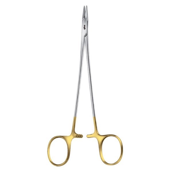 Иглодержатель по DE BAKEY, DUROGRIP, длина 210 мм, BM064R, B.Braun (Aesculap, Германия) используют для наложения швов, как поверхностных на коже, так и при оперативных вмешательствах. Инструмент выполнен с твердосплавными вставками на основе кобальта, имеет эргономичную форму, с учетом анатомических особенностей, для удобного расположения в руке и точной работы врача. Кольца рукоятки позолоченные, между ними расположен замок - кремальера, который фиксирует положение рукояток иглодержателя. На браншах нанесены специальные насечки, которые позволяют прочно удерживать иглы в процессе наложения швов.