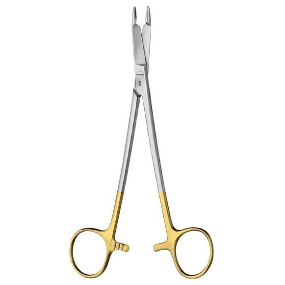 Иглодержатель по HEGAR-OLSEN, для нитей 4/0-6/0, DUROGRIP, длина 165 мм, BM124R, B.Braun (Aesculap, Германия) используют для наложения швов, как поверхностных на коже, так и при оперативных вмешательствах. Инструмент выполнен с твердосплавными вставками на основе кобальта, имеет эргономичную форму, с учетом анатомических особенностей, для удобного расположения в руке и точной работы врача. Кольца рукоятки позолоченные, между ними расположен замок — кремальера, который фиксирует положение рукояток иглодержателя. На браншах нанесены специальные насечки, которые позволяют прочно удерживать иглы в процессе наложения швов.