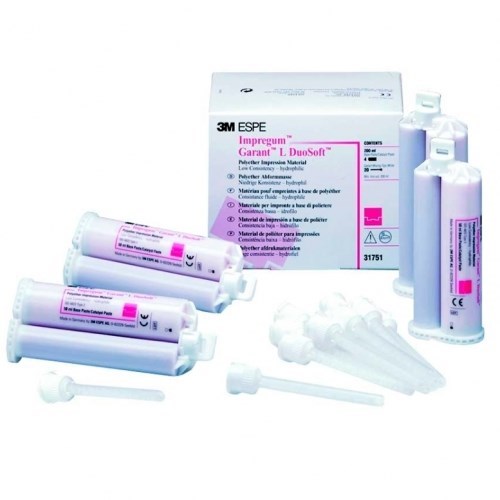 Комбинация масс Impregum Penta H DuoSoft и Impregum Garant L DuoSoft обладает всей совокупностью преимуществ полиэфиров для получения точных оттисков – гидрофильность, текучесть, тиксотропность и мгновенное схватывание по истечении рабочего времени. При этом тсочетание масс средней и низкой вязкости позволяет снимать точный оттиск по традиционной одноэтапной двухфазной методике
