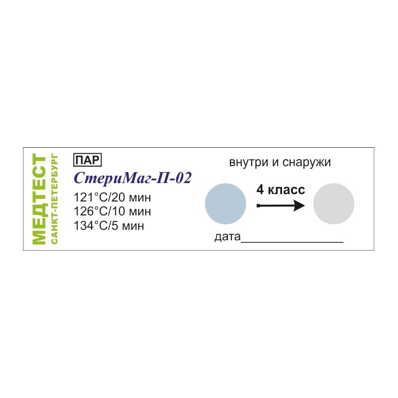 Медицинское изделие Индикатор химический многорежимный одноразового применения "Стеримаг-П-02" для контроля паровой стерилизации снаружи и внутри изделий и упаковок в режимах "121°С/20мин", "126°С/10мин", "134°С/5мин"