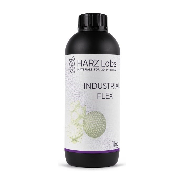 Industrial Flex обладает высокой гибкостью и упругостью. Позволяет печатать функциональные модели, такие как уплотнители, виброгасители, демпферы и т.п.Может использоваться как модификатор для модельных смол. Слабовыраженный запах и отсутствие летучих мономеров позволяет использовать материал даже в небольших мастерских.