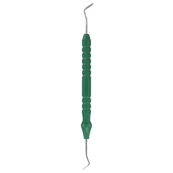 Инструмент для моделирования пломб, длина 175 мм, DF253R, B.Braun (Aesculap, Германия) изготовлен из прямой эргономичной ручки зеленого цвета с удобной формой и рифлением, которое обеспечивает крепкий захват и не позволяет выскальзывать из руки специалиста во время проведения работ. Инструмент имеет двухстороннюю рабочую часть из нержавеющей стали.