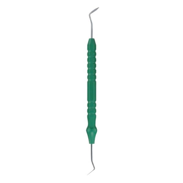 Двусторонний инструмент для моделирования пломб с рабочими частями в форме лепестков. Ручка инструмента ребристая, что обеспечивает удобный хват при работе, что снижает нагрузку на кисть врача.