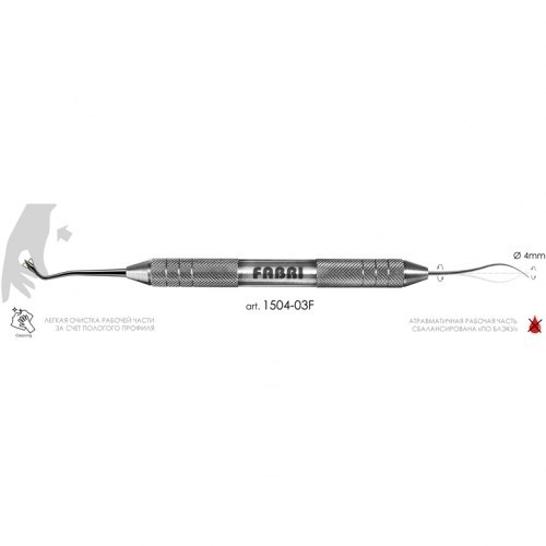 Инструмент серии CLASSIC F - классическая серия инструментов FABRI. Сочетание легкой эргономичной ручки диаметром 10мм и доведенных вручную рабочих частей из нержавеющей стали концерна Schmolz+Bickenbach AG. Вес: ~26 г. Стерилизация: tмах-180°С