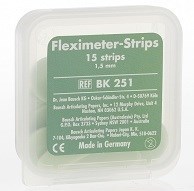 Весьма практичной инновацией в работе как зубного врача, так и зубного техника являются гибкие измерительные (флексиметрические)полоски (Fleximeter-Strips). Эти гибкие измерительные полоски представляют собой достаточно эластичные ленточки трех различных толщин для измерения уровня подготовленности при шлифовке зубов и зубных протезов или их реставрации (например, с помощью коронок, мостовых протезов или двойных коронок). Различная толщина гибких измерительных полосок составляет 1,0 мм, 1,5 мм и 2,0 мм и потому они могут также использоваться для определения и измерения вертикальных зазоров (при прикусе). Материалом полосок является специальный силикон, который можно стерилизовать при температуре до 200°C.