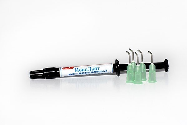 ИОНОЛАЙТ стеклополиалкенатный композитный цемент светового отверждения текучей консистенции (прокладки, выравнивание дна полости, запечатывание фиссур, пломбирование по V классу).